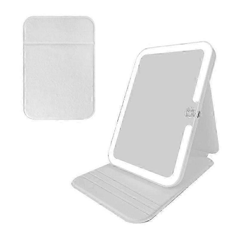 Multifunctional Small Travel Makeup Mirror: This portable travel makeup mirror overall size is 7.9x 5.3in, just an iPad Mini Size, ultra-light and ultra-thin, it fits easily into your handbag, cosmetic bag, or travel suitcase.Suitable makeup for eyeliner, eyebrows, and lipstick, make your makeup details more perfect. You can adjust the angle for the best view with its foldable featureSmart Dimmable Touch Screen 3 Color Lighted Mirror: Our travel light up mirror has bright but not dazzling LED lights, protecting your eyes. It offers cool light warm light natural light three different color temperatures and stepless dimming, short press to adjust the color temperature, long press to adjust the brightness, suitable for any situationUSB Rechargeable Make Up Mirror: The travel vanity mirror comes with a Type-C charging cable and built-in 800mAh lithium battery. Our LED makeup mirror can be used continuously for more than 1 weeks in full charge. A good ideal for travel, home, or any cosmetic occasion. Travel essential for womenFoldable Desk Mirror with PU Leather Case: The travel vanity mirror with lights is foldable easy to carry and has leather case to prevent bumping and breaking. You can freely adjust the angle of the foldable LED makeup mirror, choose the perfect angle to suit your needs, and non-slip rubber pads on the bottom ensure stabilityIdeal Gift for Women and Girls: This mirror with lights is dorm essentials for girls as a good interior decoration, also suitable for bedroom, bathroom, dresser tabletop, dressing room. This lighted makeup mirror with stand blends elegance, organizer functionmaking it a thoughtful gift for birthdays, holidays, Mothers Day, or any special moment. A beautiful addition to any vanity or desk See more product details Note: Due to the light and screen setting difference, the item's color may be slightly different from the pictures. Please allow slight dimension difference due to different manual measurement.