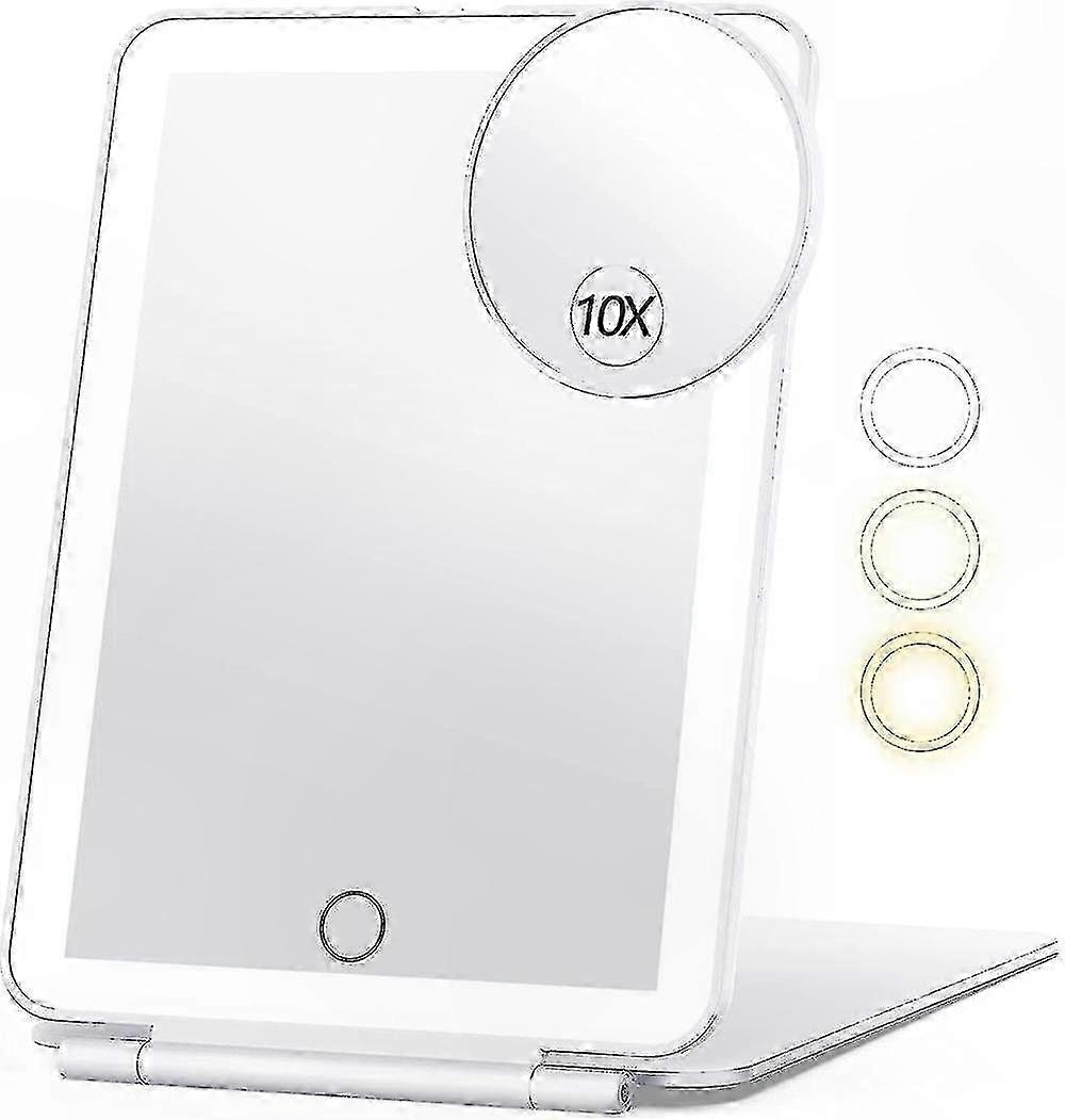 Portable Makeup Mirror with 10x Magnification, 80 LEDs, 3 Lighting Modes, Rechargeable Battery, Ultra Slim Design for Travel