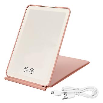 Folding LED Makeup Mirror 3 Light Colors Stepless Dimming Touch Switch USB Rechargeable Mirror Rose Gold