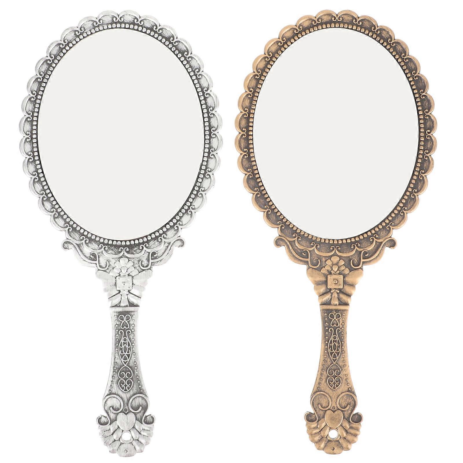 Small Hand Mirror Cute Makeup Mirror Women Portable Oval Gold High Clarity Reflection 2Pcs