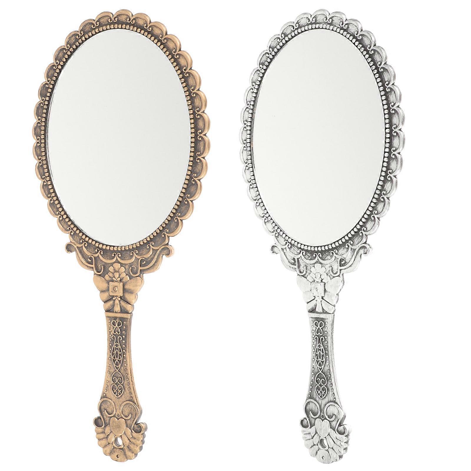 Small Hand Mirror Cute Makeup Mirror Women Portable Oval Gold High Clarity Reflection 2Pcs