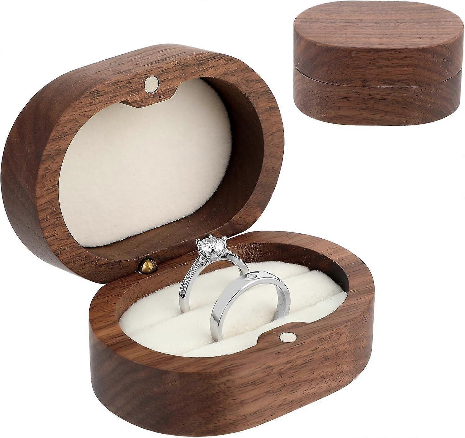 Double Ring Box Wooden Wedding Ring Box Engagement Ring Holder, Ring Storage Box for Proposal, Engagement, Wedding, Ceremony (Double Slots) Brown