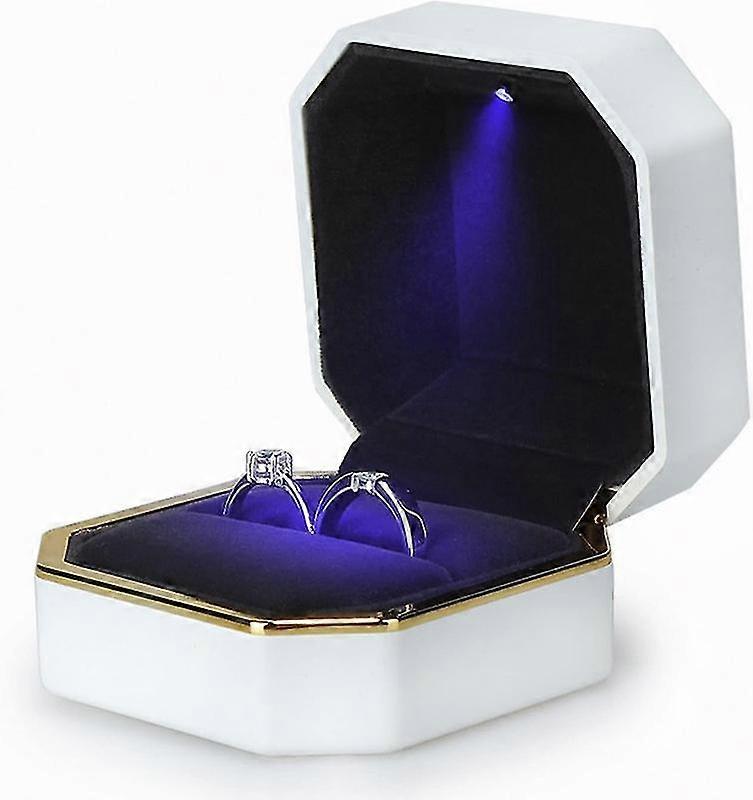 Luxury Ring Box, Square Velvet Wedding Ring Case Jewelry Gift Box With Led Light For Proposal Engagement Wedding