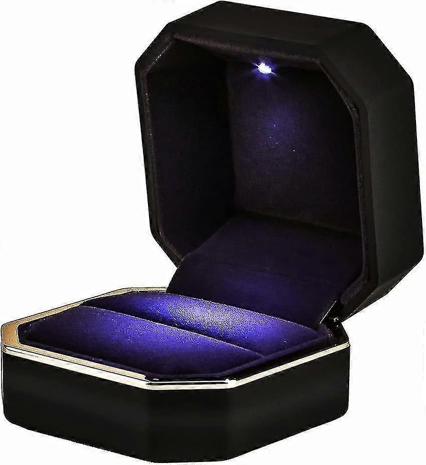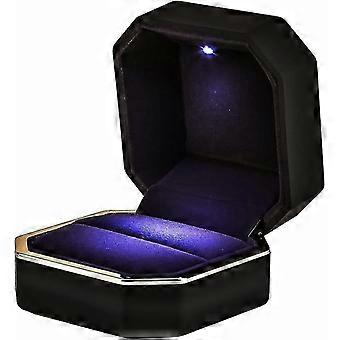 Luxury Ring Box, Square Velvet Wedding Ring Case Jewelry Gift Box With Led Light