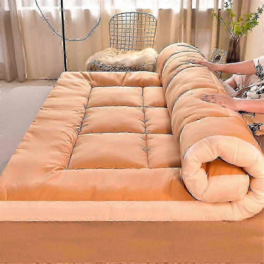 Japanese floor mattress, extra thick, foldable, futon bed, camping mat, bronze, 120 x 200 cm