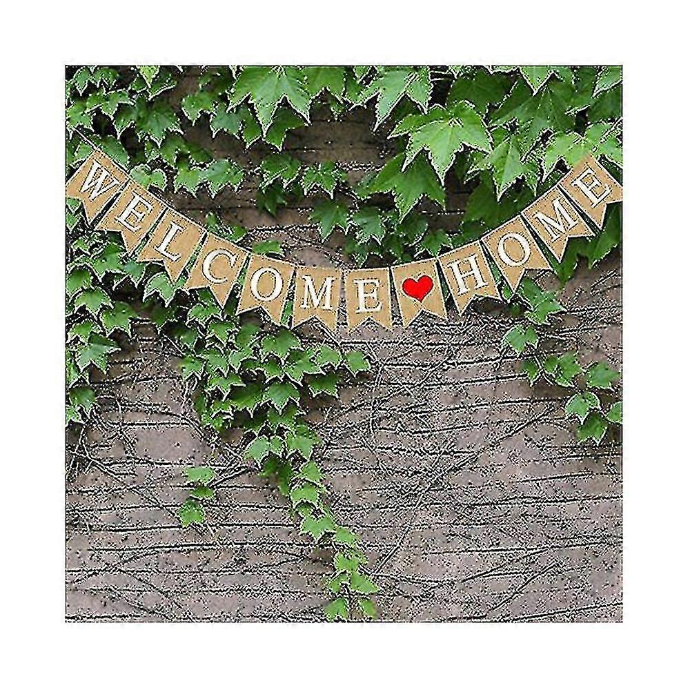 Welcome Home Banner Bunting, Rustic Burlap Bunting Banner, Welcome Home Decoration Family Party Banner Shibaod
