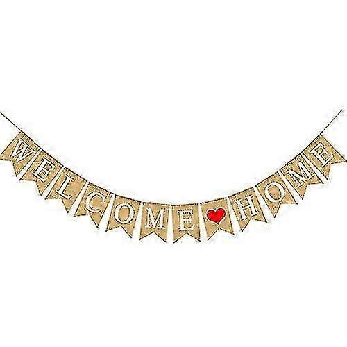 Welcome Home Banner Bunting, 2.8m Rustic Burlap Bunting Banner, Vintage Welcome Home Decoration Family Party Banner