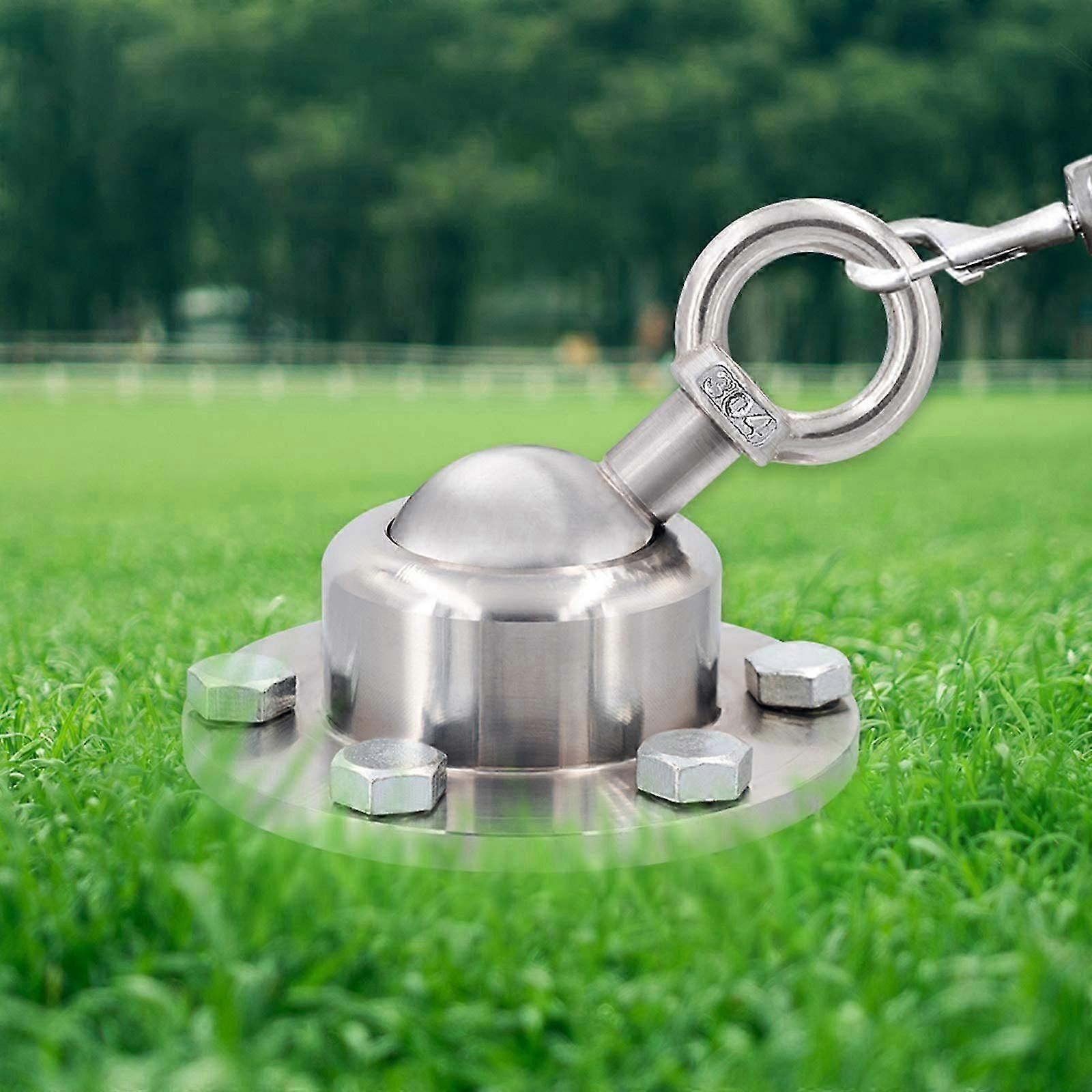 - Safety system and durable build: The main body of the dog stake is made of durable stainless steel, suitable for all seasons. It can withstand up to 150 lbs of pulling force on the screws (which are not stainless steel). Tested on sturdy ground, it safely resists up to 1000 lbs of pulling force; not suitable for soft, sandy or muddy ground. Ideal for garden, camping or other environments.- 360 rotating design: Fully 360 degree rotating ball design allows your dog to move freely while you enjoy sun and leisure time.- Easy installation: Simply attach the 6-piece long screws with a hammer into hard ground, then use a hex key to attach the 6-piece short screws and fix the rotating base.- Practical dog anchor: The screws can be removed and reinstalled at any time without damaging the anchor. Suitable for large and medium dogs.
