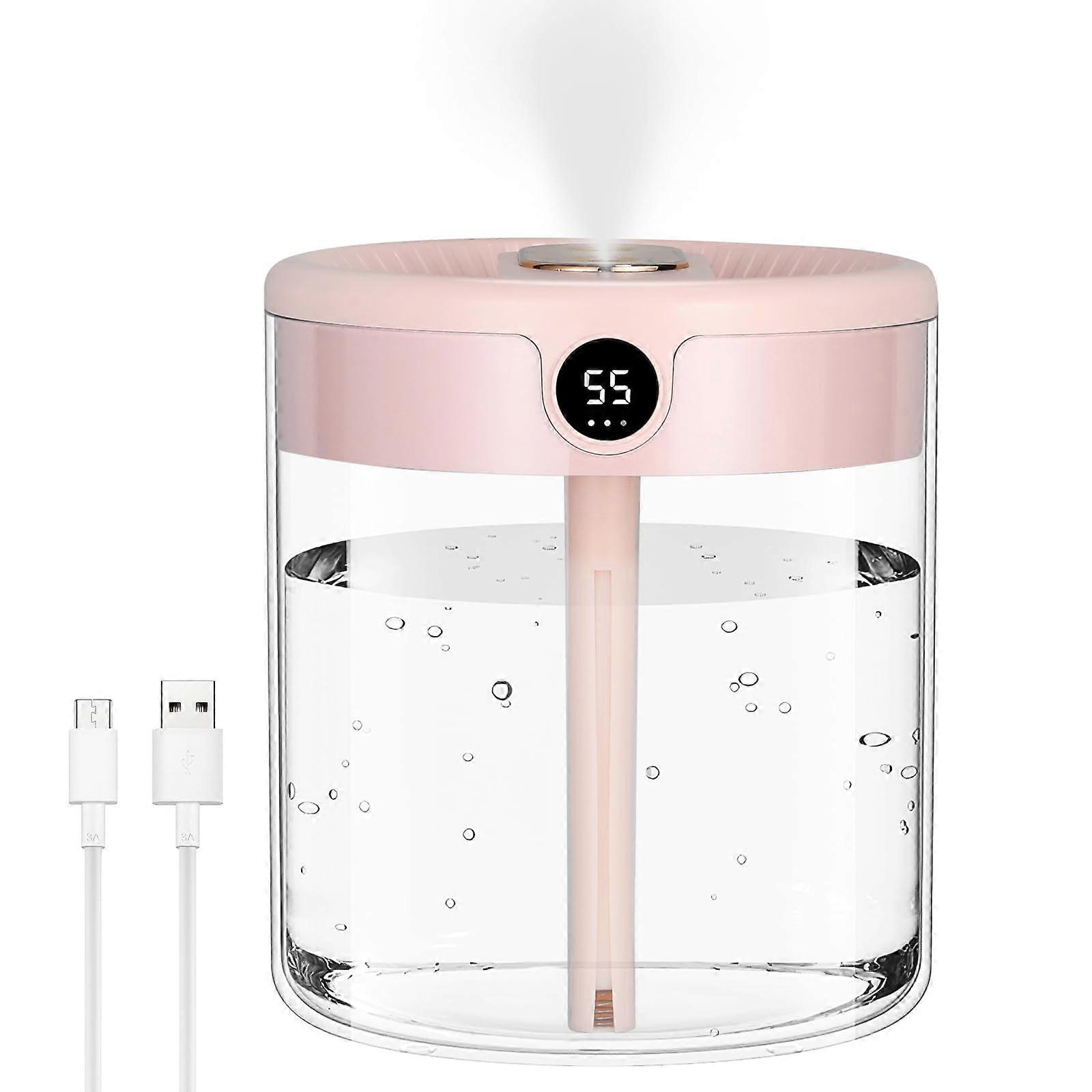 【Efficient Humidifying】Our humidifier for bedroom has 2 nozzles for dual mist spray. It sprays nano-level water particles directly onto the bottom of the skin, moisturizing dry skin, alleviating dry and tired eyes, and preventing static electricity. Before initial use, remove the cotton ball and fully soak it in water. It is recommended to replace it every 2-3 months. 【2L Large Capacity】The air humidifier is equipped with 2L large capacity water tank, which does not require frequent water refilling. The water filling port is located at the top, so you can easily add water without disassembling the humidifier. 【Quiet Operation & Warm Night Light】Press the power button for 2 seconds to turn on the night light and accompany you during sleep. The cool mist humidifier for home works extremely quietly at night, less than 36 dB, which will not disturb you while sleeping or working. 【3 Mist Modes】There are 3 modes: dual-hole mist, single-hole intermittent mist, and dual-hole intermittent mist. You can adjust the mist volume according to your needs. The dual-hole mist mode can be constantly used for 10 hours, and the intermittent mist mode can be used for 20 hours. 【Real-Time Humidity Monitoring】The USB humidifier has a smart sensor that monitors the humidity in the room and displays it on the screen. Use our humidifier for home to create a comfortable environment for you.