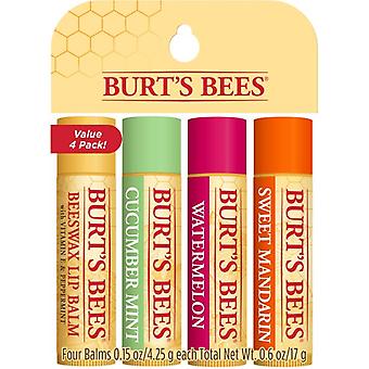 مرطب شفاه طبيعي ١٠٠٪ من بيرتس بيز، شمع عسل طازج، خيار ونعناع، بطيخ، ويوسفي حلو، ٤ أنابيب