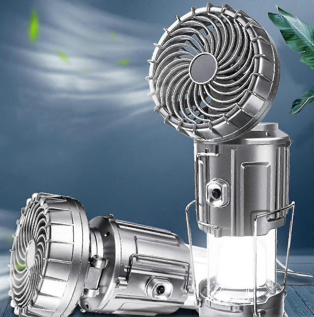 Portable Camping Fan With Lights, Rechargeable Solar Camping Fan With Flashlight Y
