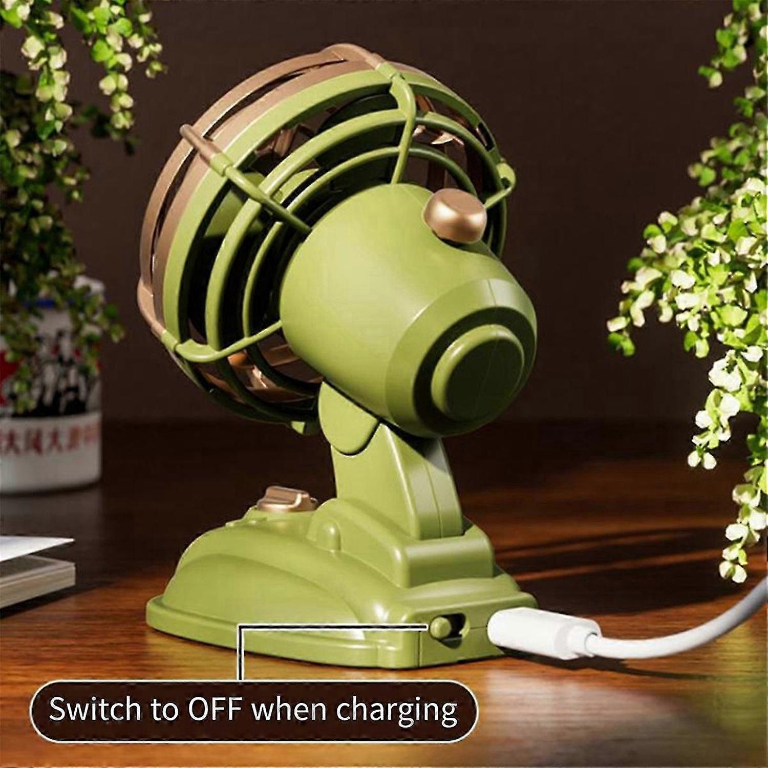 Retro Mini Desktop Fan 400mAh USB Rechargeable Outdoor Desk Fan,Green