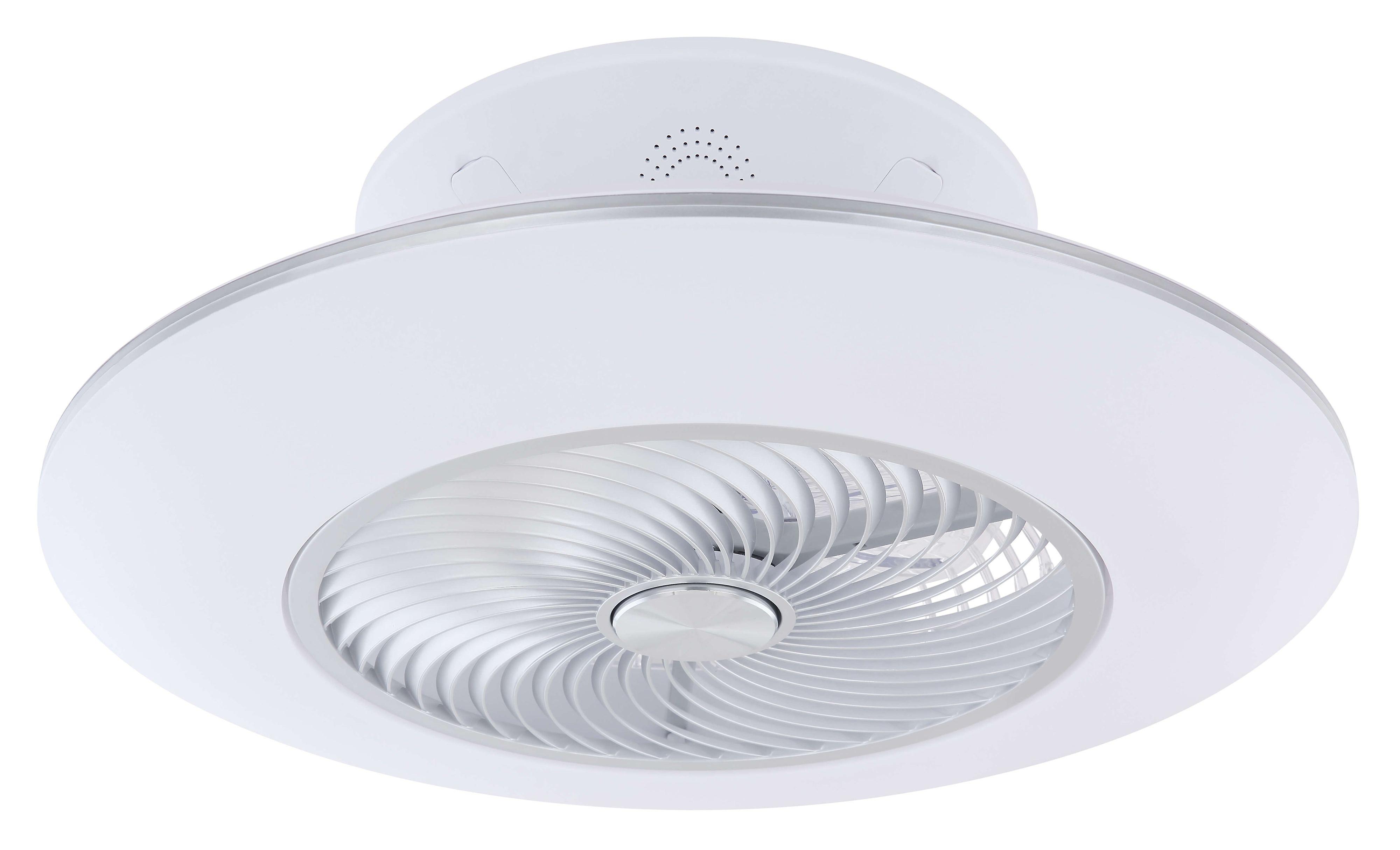 Dimensions and technical details 230 Volt ~ 50 Hertz Diameter: 58cm / 23" Housing colour: white (metal) Blade colour: white (plastic) Integral lighting: 40 W LED (included in the delivery) Max. motor wattage: 18 W Revolutions per minute: 592 / 713 / 816 / 942 / 1050 / 1150 Overall drop: 22cm / 8.7" Not reversible, only one running direction Includes remote control: 6 fan speeds / off, light on / off / dimming / colour temperature / night-light, timer Weight: 3.4kg / 7.5lbsDetails lighting LED Wattage: 40 W Colour temperature: 3000 - 6000 K Lumens (source): 4000 lm Lumens (effective): 1900 lm Average service life: 20000 h Dimmable Energy efficiency class: A The lamps cannot be changed in the luminaire.