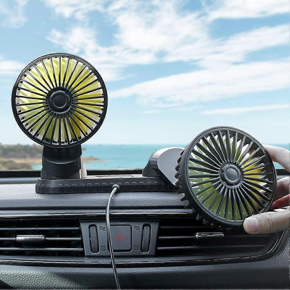 Mini Car Fan 12V 24V Double Headed Car Fan Adjustable Vertically and Horizontally 360 Degree Rotation Car Air Conditioner Fan with THREE Speed USB Fan