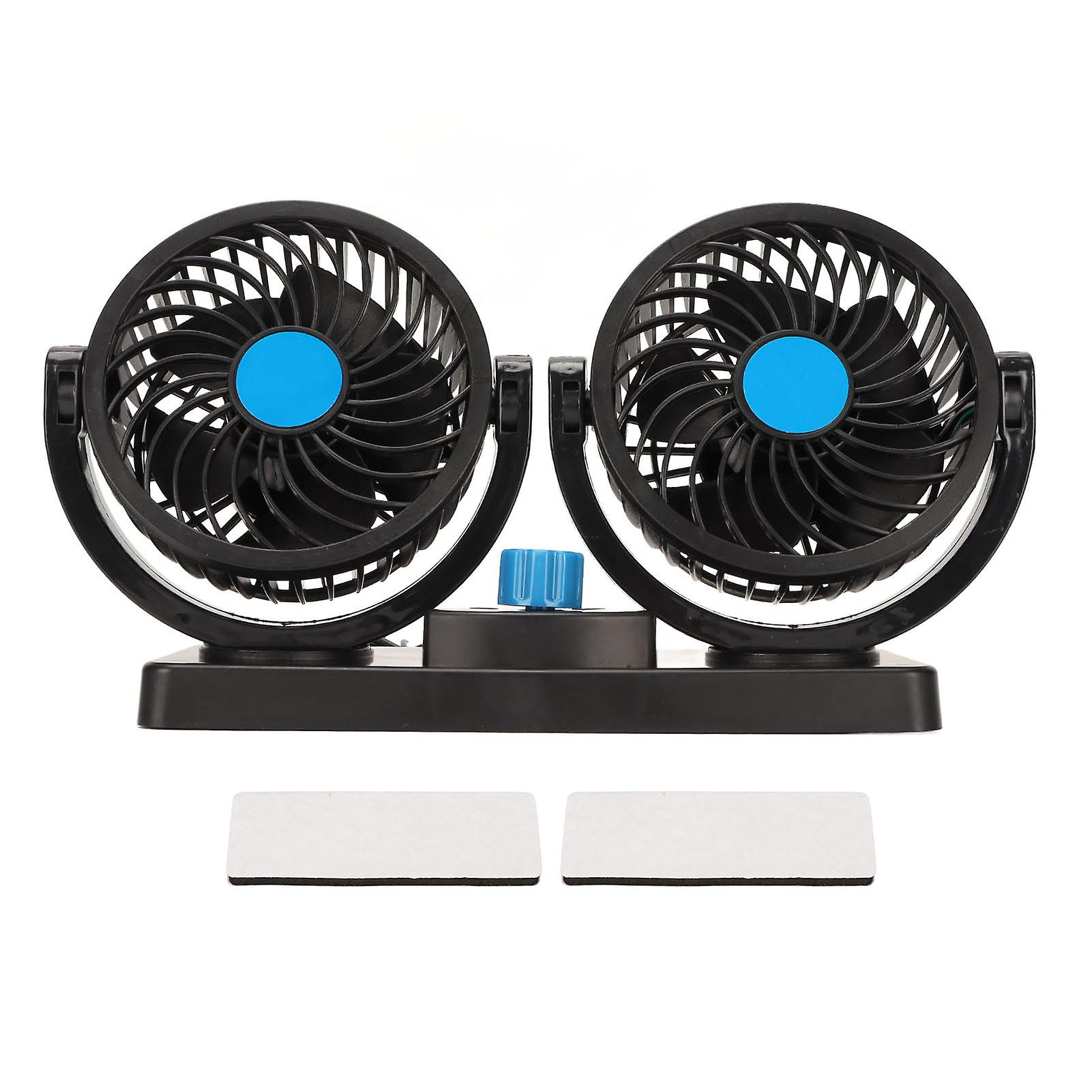 USB Car Fan Dual Head Quiet 360 Degree Rotatable Powerful Portable Vehicle Cooling Fan for Truck RV ATV Boat