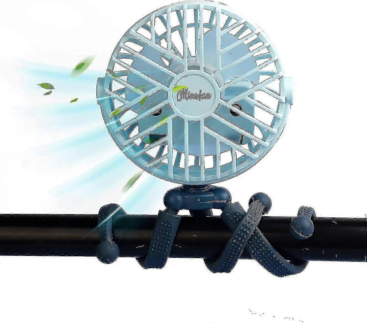Portable Stroller Fan | Octopus Fan | Baby Clip Fan 3 Speed Adjustable Night Light Usb Charging 360 Rotation For Car Seat, Bike, Camping (blue)
