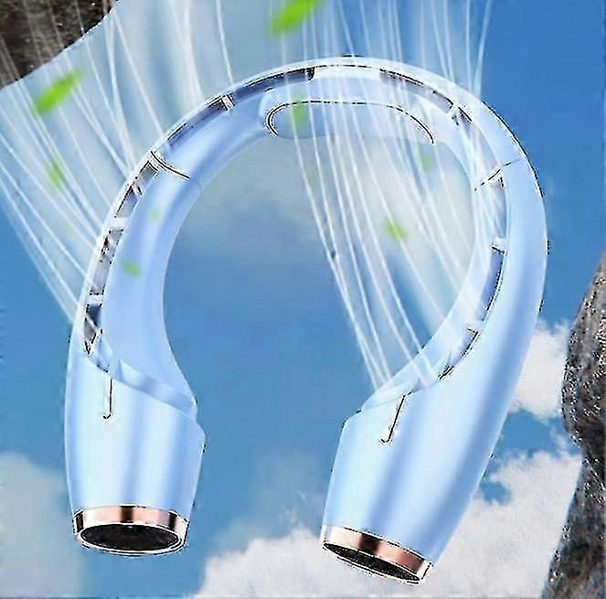 Portable Neck Fan Usb Rechargeable Neckband Bladeless Air Blue#d069120