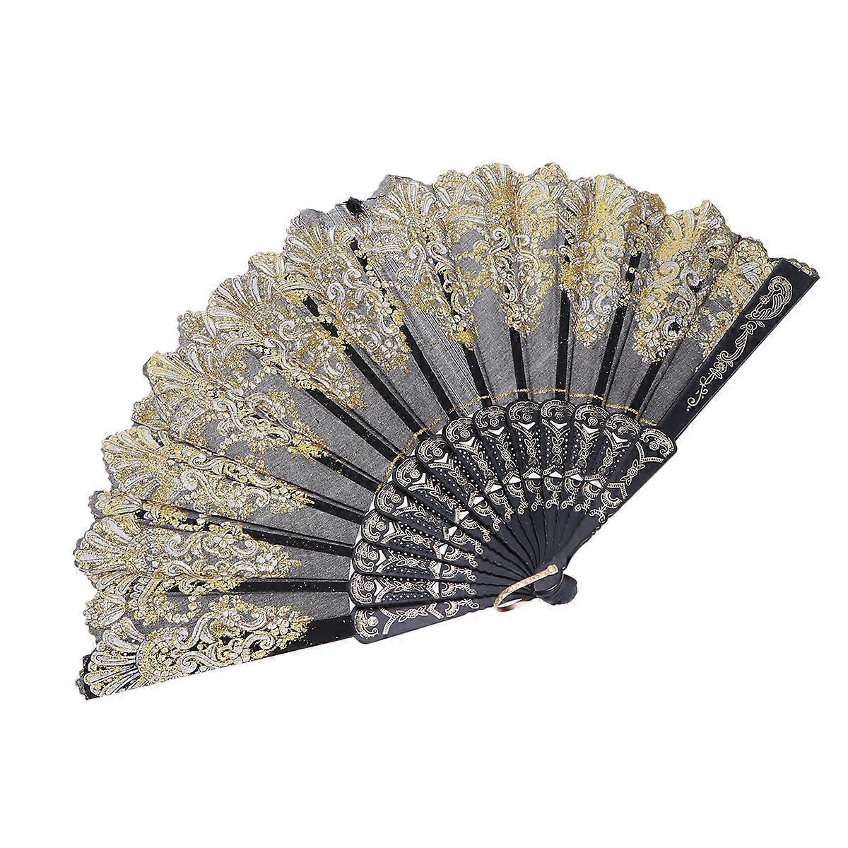 Gold Sequin Folding Fan for Performance Use Black Color Vintage Hand Fan