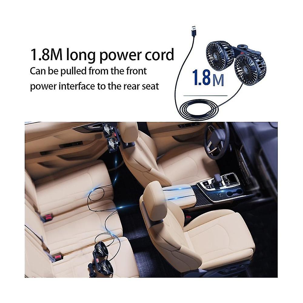 Fan For Car Electric Car Clip Cooling Fans Headrest Rotatable Dual Head 3 Speed Rear Air Fan