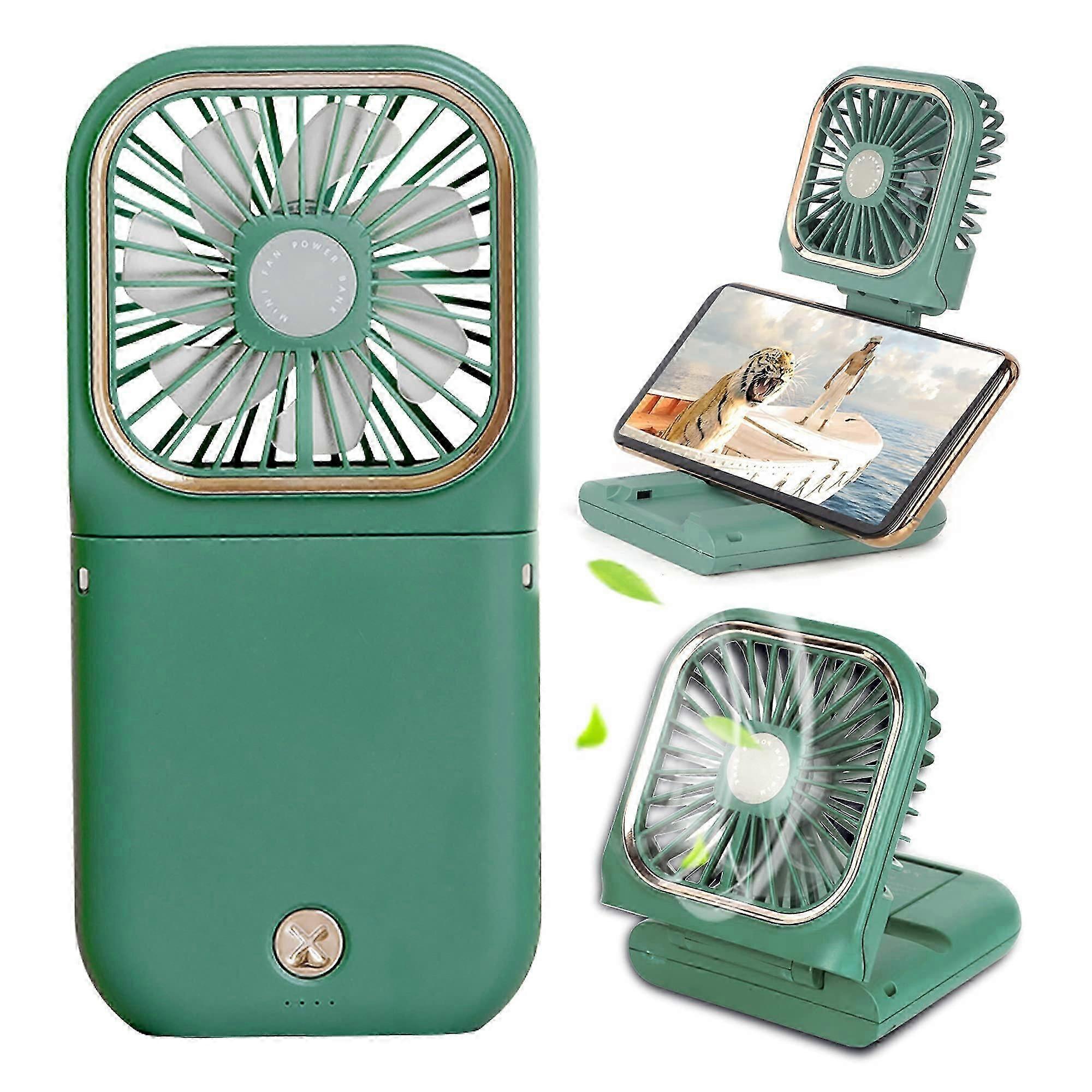 Handheld Portable Fan,Rechargeable Power Bank,3 Speeds(Green)