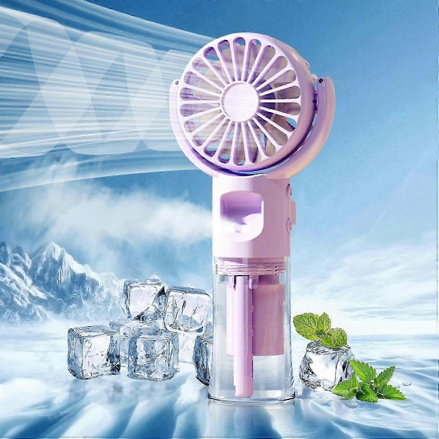 Mini Humidifier Spray Handheld Fan, Rechargeable USB Fan, 4 Adjustable Wind Speeds, Portable Handheld Fan (Purple)