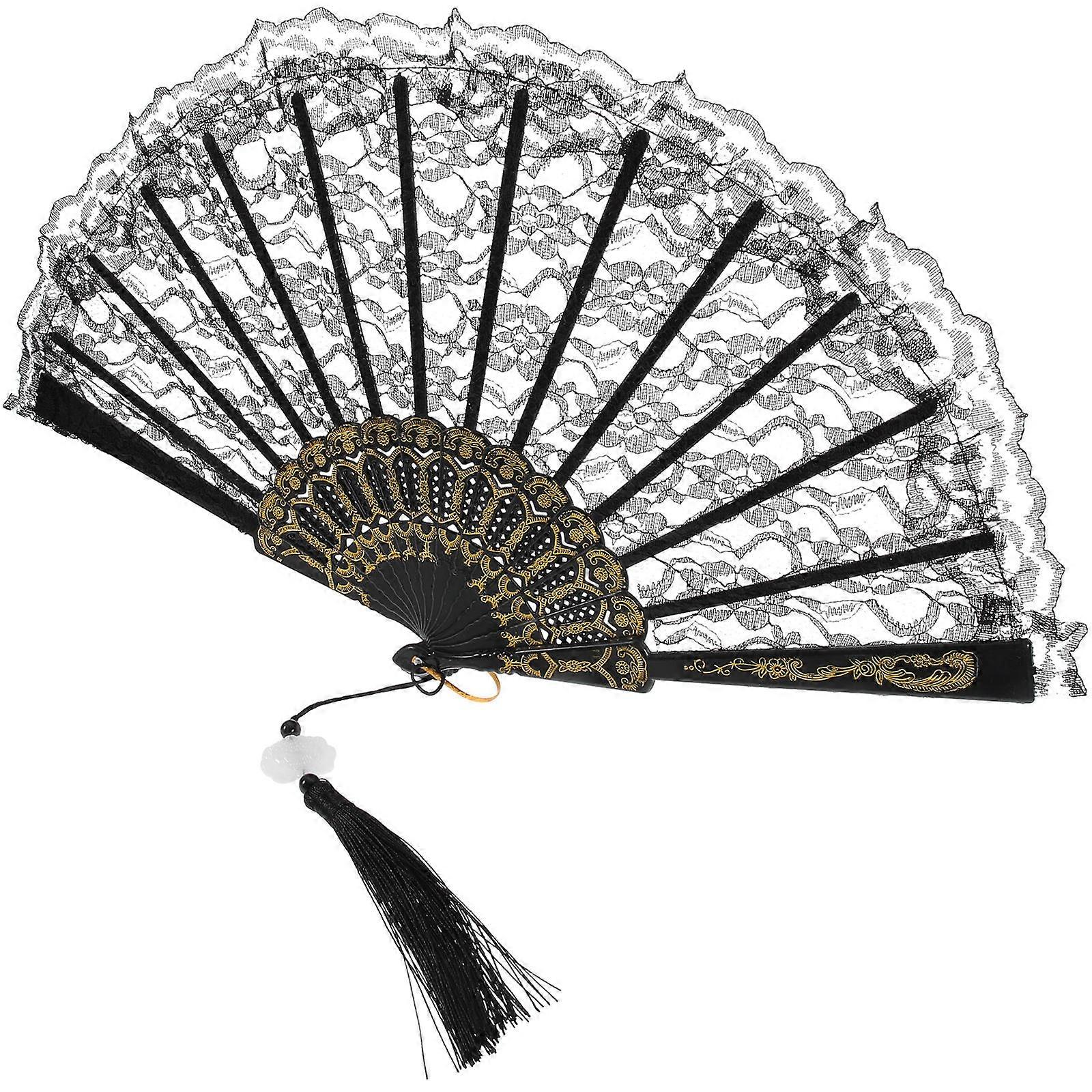 Handheld Folding Fan Lace Hand Fan Women Halloween Thanksgiving Day Christmas 1Pack