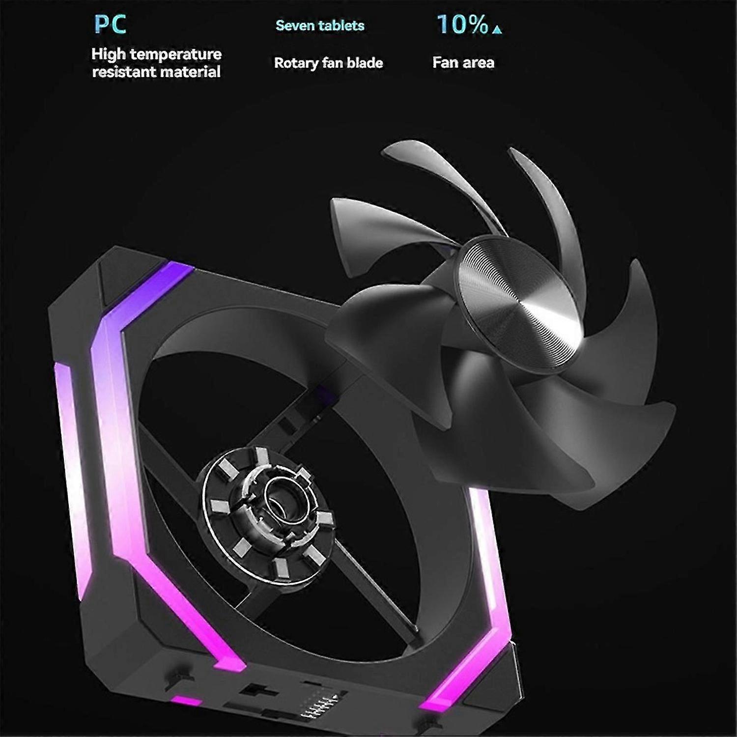 The fan and frame use programmable micro-control ARGB lamp beads, and a mirror ring light effect is added to the upper and lower frames of the fan, which is suitable for motherboard light synchronization, which means that DIY computers can be more colorful! Supports motherboard PWM to control computer fan speed to keep your system cool at all times. The intelligent temperature control speed can be dynamically adjusted from 800RPM to 1800RPM. High airflow, low noise fan blade, balanced 7-blade design, increasing the output air pressure to improve cooling efficiency, hydraulic bearings to high-speed operation, reduce wear and tear, reduce noise and improve service life. Support ARGB motherboard divine light synchronization Support , Microstar, Chiao Jia, Qing +5V 3 PIN motherboard synchronization.<br><br>Rated Voltage:DC 12V Fan size:120x120x25mm Rotation speed:800-1800RPM±10% Bearing type:Hydro Bearing Lamp type asynchronous light: programmable micro-control ARGB lamp Number of lamps: 0+22 LED Rated voltage: 12V DC (Fan)/5V DC (LED) Interface specification: 4 Pin PWM / 3Pin ARGB Rated current: 0.2A (Fan)/1.1A (LED) Air volume: MAX 47.2H20 Air pressure: MAX 1.66dBA Fan noise level: MAX 30dBA Power consumption: MAX 1.8W (FAN speed line), MAX 4.35 W (LED light control line Positive blade different speed air volume 1000 RPM: 26.22CFM+3% 1300 RPM: 34.09CFM+3% 1600 RPM: 41.96CFM+3% Positive blade different speed air pressure 1000 RPM: 0.49+3% 1300 RPM: 0.83H20+3% 1600 RPM: 1.26H20+3% Noise of positive blade at different speeds 1000 RPM: 14.6dB+3% 1300 RPM: 21.67dB+3% 1600 RPM: 26.67dB+3% Colour:Black Material:PC Tips: The product may be updated constantly ,Due To Different Batches, The Actual Product May Have Slight Differences Or Color Differences, Which Does Not Affect Use<br><br>Package Contents