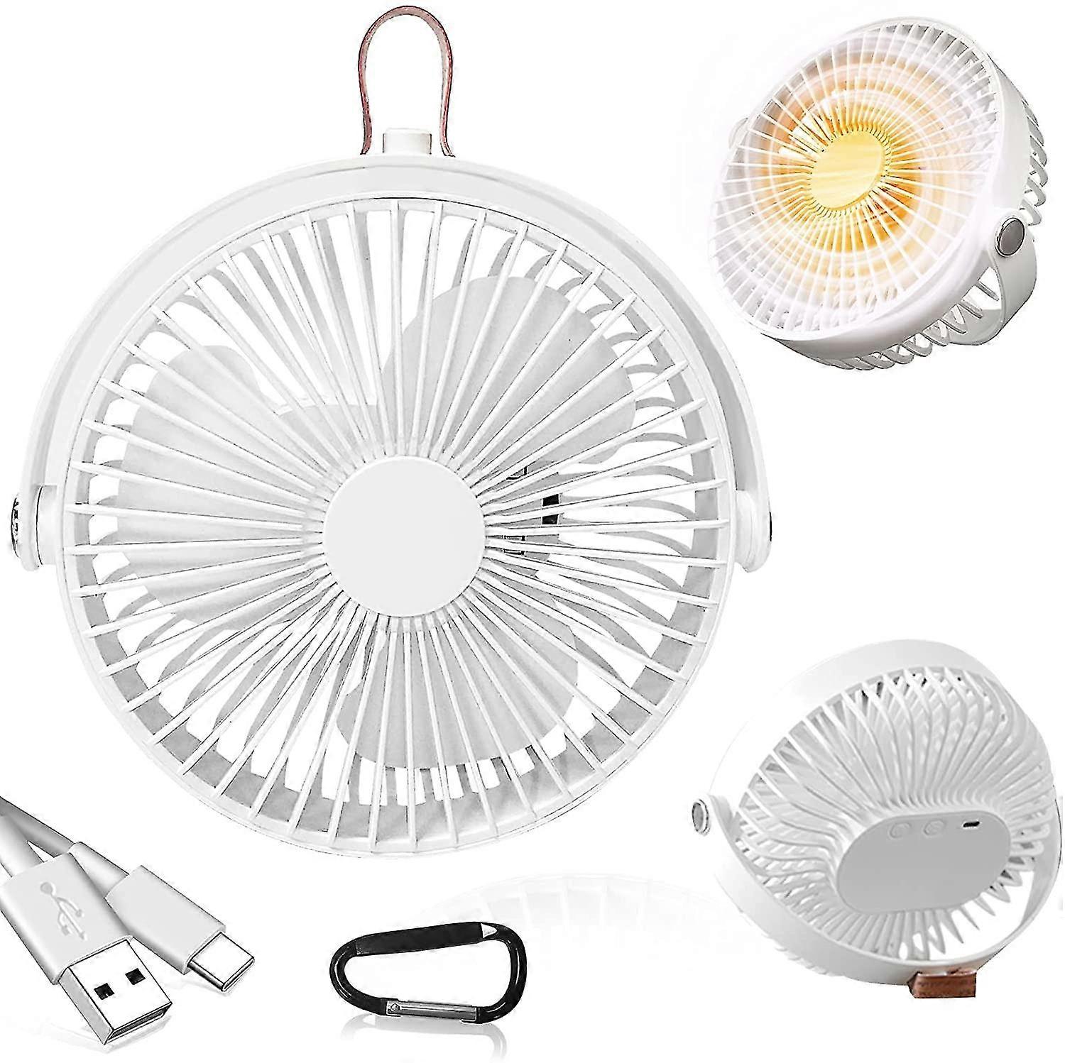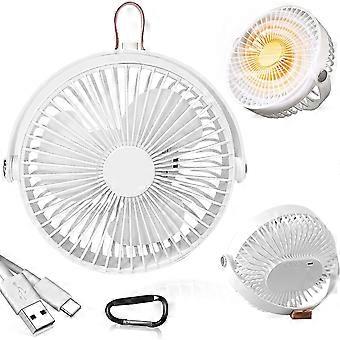 Usb Fan, Desk Fan With Led Light, Rechargeable With Hook And 1/4" Screw, Usb
