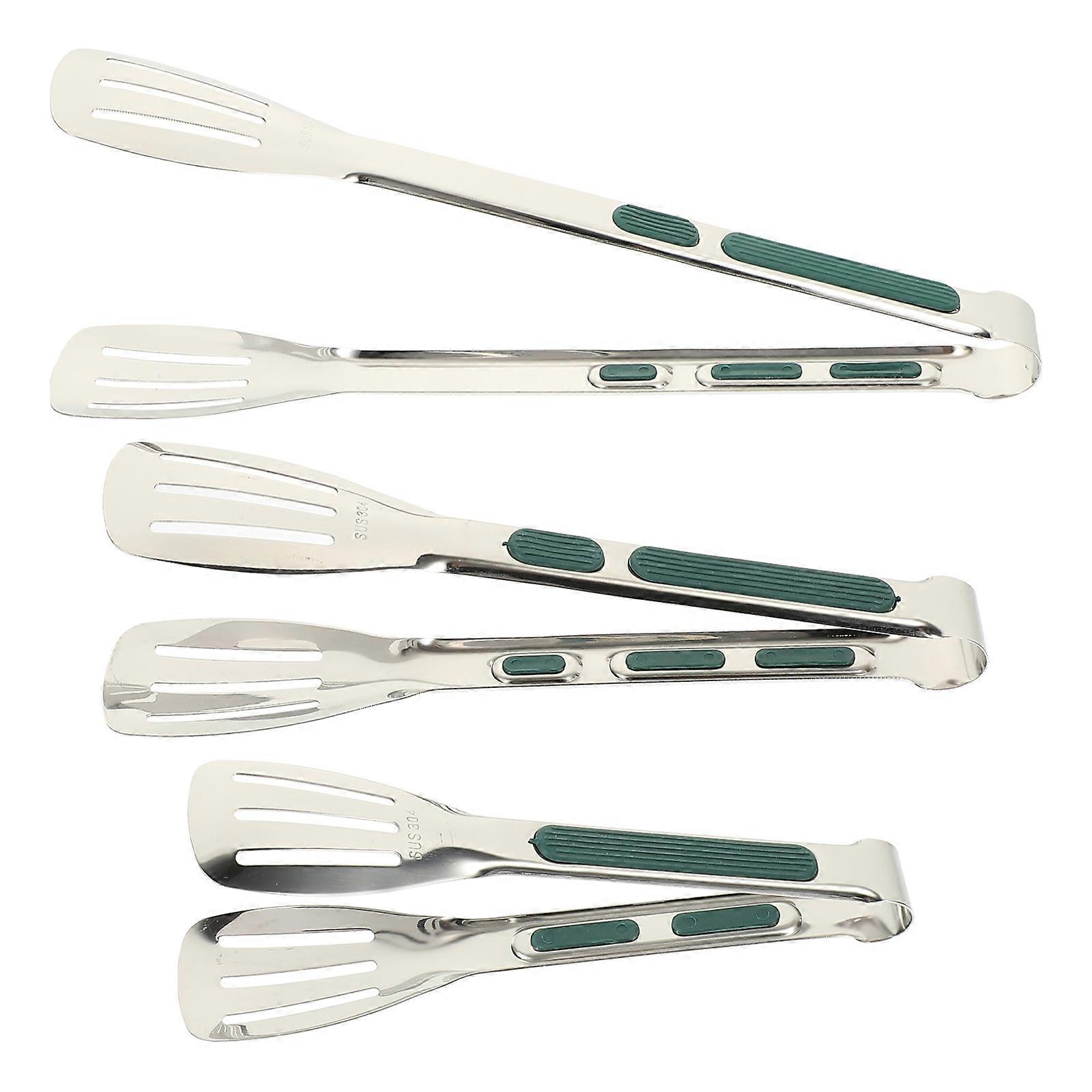 Convenient Cooking Tong Metal Kitchen Tongs Grilling Home Cooks Simple Design Green 304 Stainless Steel 3Pcs