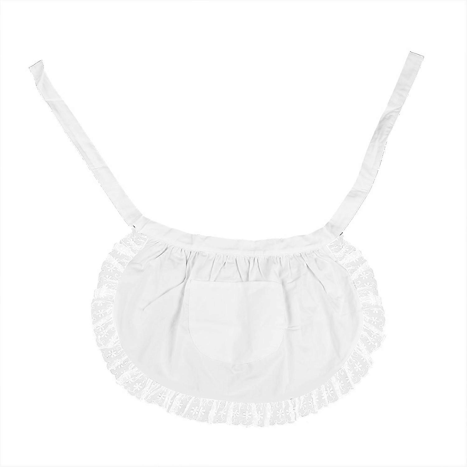 Cotton White Women Maid Lace Hem Kitchen Half Apron With Pocket