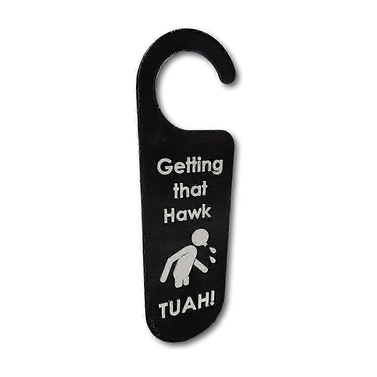 Featuring the iconic "Hawk TUAH " slogan, this door hanging serves not only as a decorative piece, but also as a clear, fun communication tool. Whether it's signifying a private moment or injecting humor, it instantly sets the mood. in the USA, this door hanging is made from high-quality acrylic for durability and easily mounts to most doorknobs. This door hanging is perfect for a of occasions, making it a great gag gift, a humorous addition to a bachelor , a unique Father's Day gift, or an unconventional wedding gift. Its versatility ensures it's always an appropriate, humorous choice. Conveniently designed with a simple slide-on graphic, this door hanging mounts seamlessly to most standard doorknobs and handles, making installation quick and easy. Not only does it make a humorous statement, it's also a practical and informative tag that lets visitors gently know that something private or special is going on behind the door, setting boundaries in a lighthearted way. Colour:Black Material:Acrylic Package Contents: 1x prank door hook Only the above package content, other products are not included. Note: Light reflection and different displays may cause the color of the item in the picture a little different from the real thing. The measurement allowed error is +/- 1-3cm.