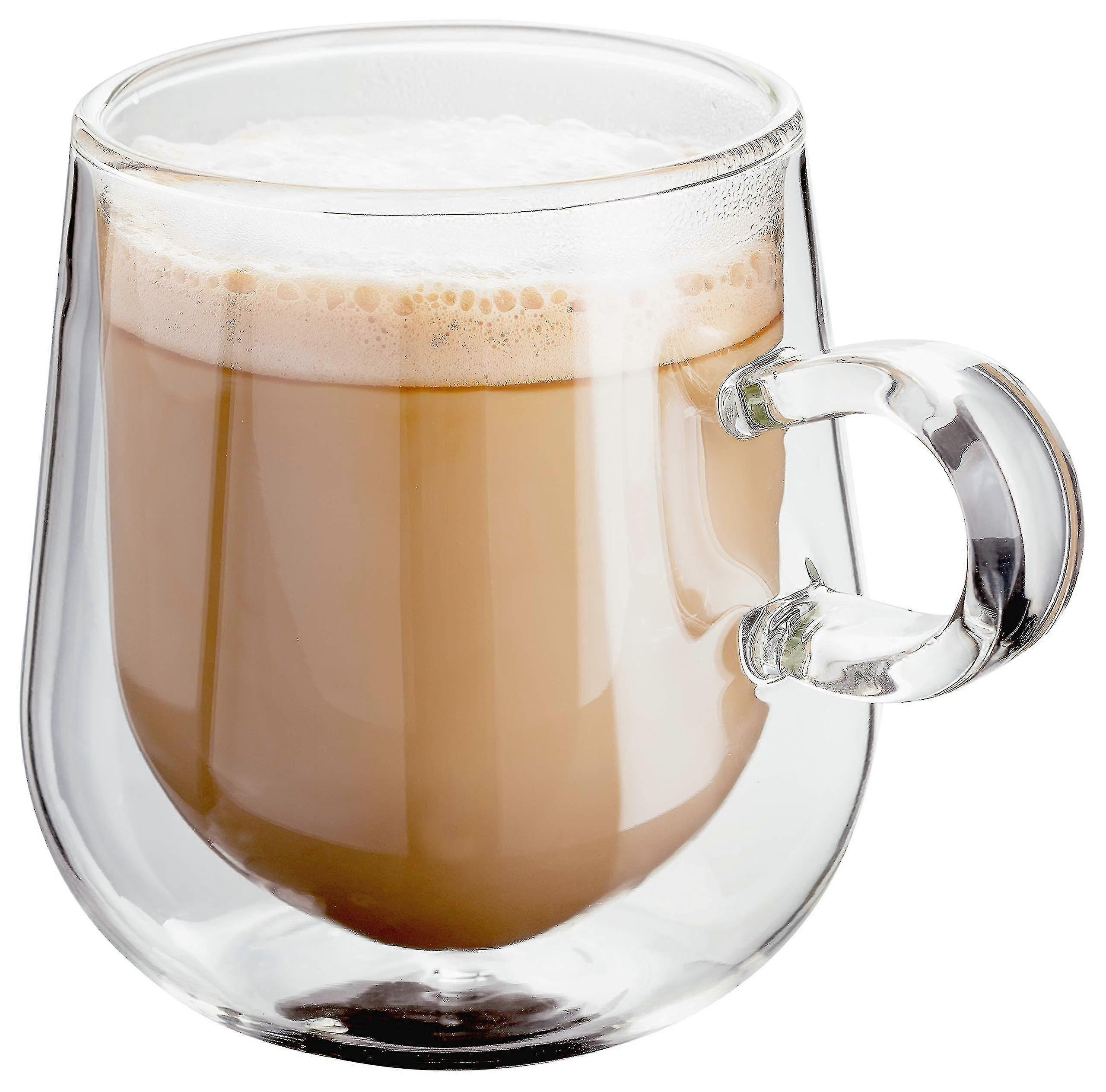 Double Walled Glass Coffee Cups With Handle, Set Of 2, Hollow Vacuum Sealed 200ml Cup