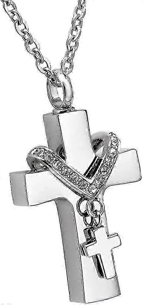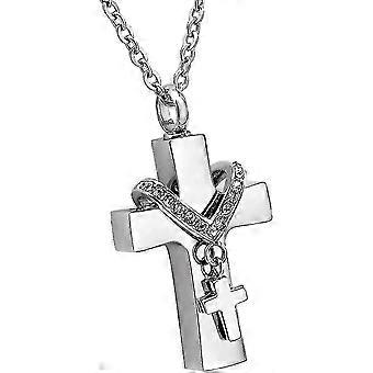 Double Cross Memorial Urn Pendant Cremation Jewelry Stainless Steel
