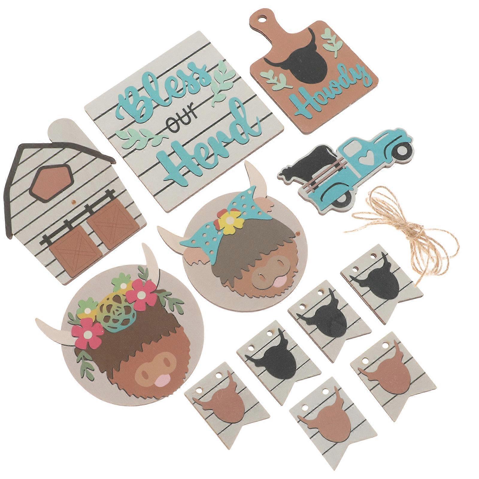 Farmhouse Style Cow Theme Tiered Tray Centerpiece Ornaments For Birthday Party Various Sizes Quality Wood 1 Set