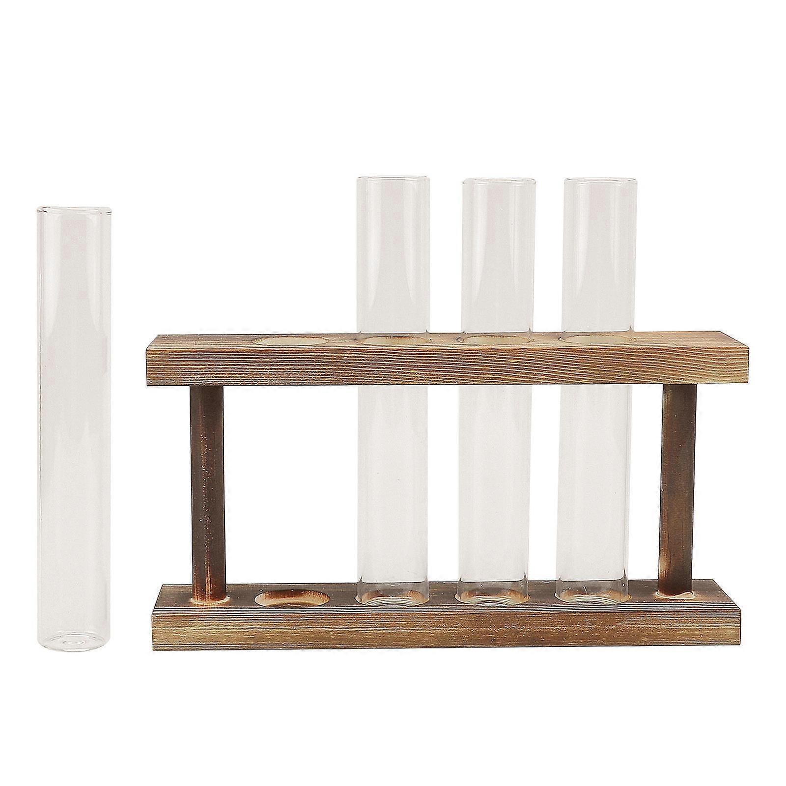 Cylinder Vase for Aquatic Plants, Glass Test Tube with Wooden Rack