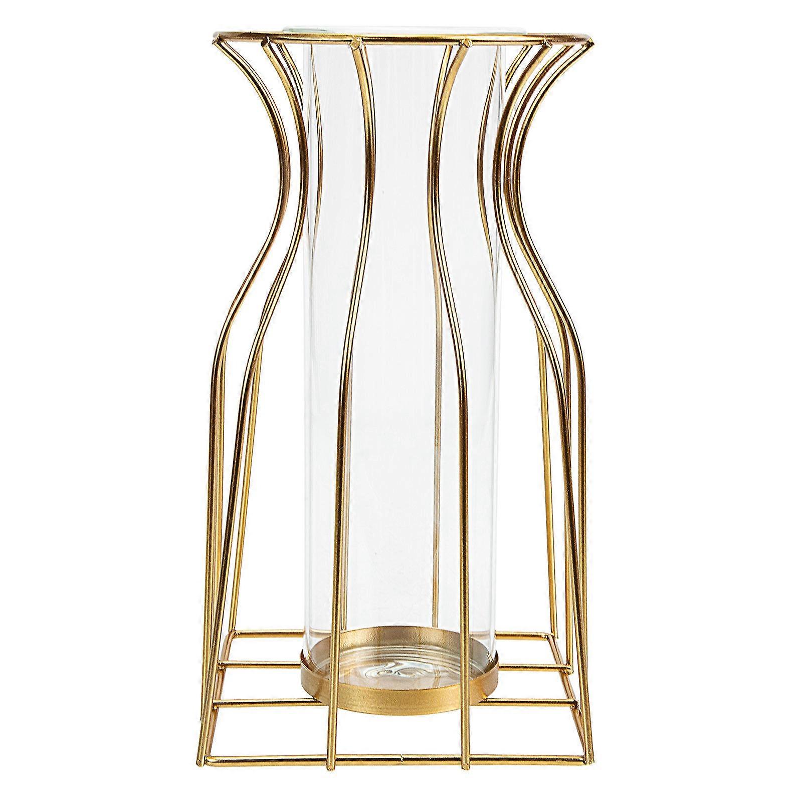 Chic Glass And Iron Flower Vase For Indoor Adornment In Fashionable Golden Color With Shape For 1Set
