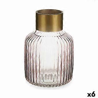 Vase Gift Decor Pink Golden Glass Stripes 14,5 x 22 x 14,5 cm (6 Units)