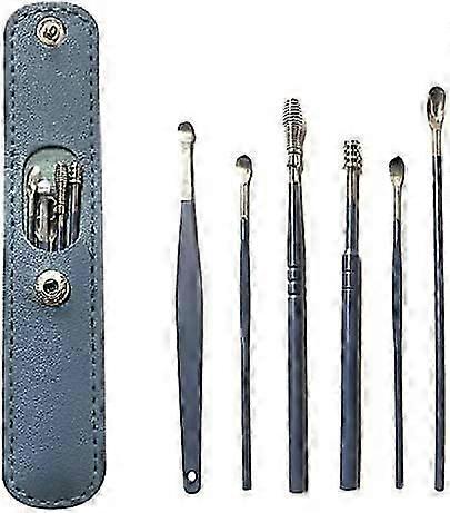Ear Wax Remover,6 Pcs Stainless Ear Wax Removal Kit with Portable Bag (blue)