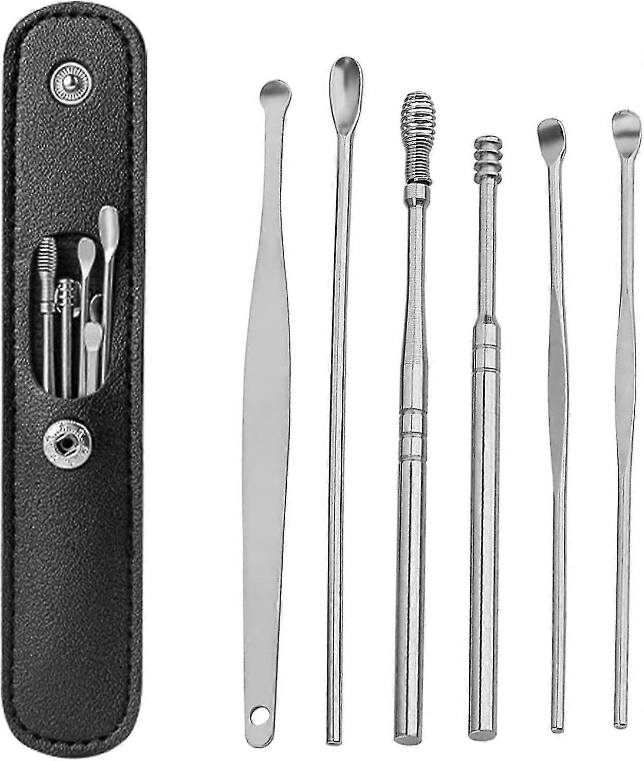 Ear Wax Remover,7 Pcs Stainless Ear Wax Removal Kit With Portable Bag (black)