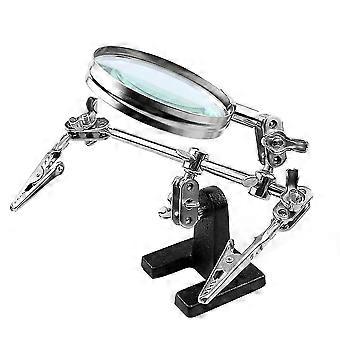 Helping Third Hand Tool Soldering Stand With 5x Welding Magnifying Glass 2 Alligator Clips 360 Degree Rotating Adjustable
