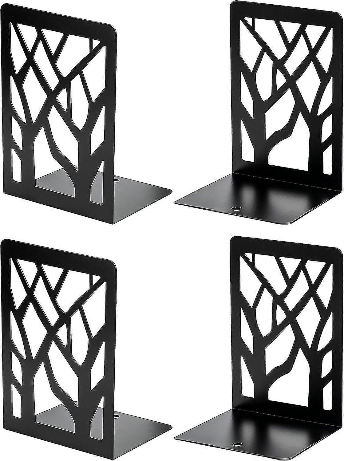 Heavy-Duty Metal Bookends with Non-Slip Holders for Shelves Decorative Book Stops for Home Black Set of 2