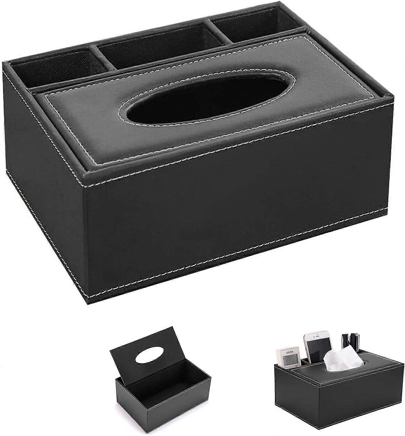Rectangular PU Leather Tissue Box 1 Piece Tissue Box,Multifunctional Tissue Holder,Elegant and Stylish Napkin Holder for Home Desk Storage Box,Black