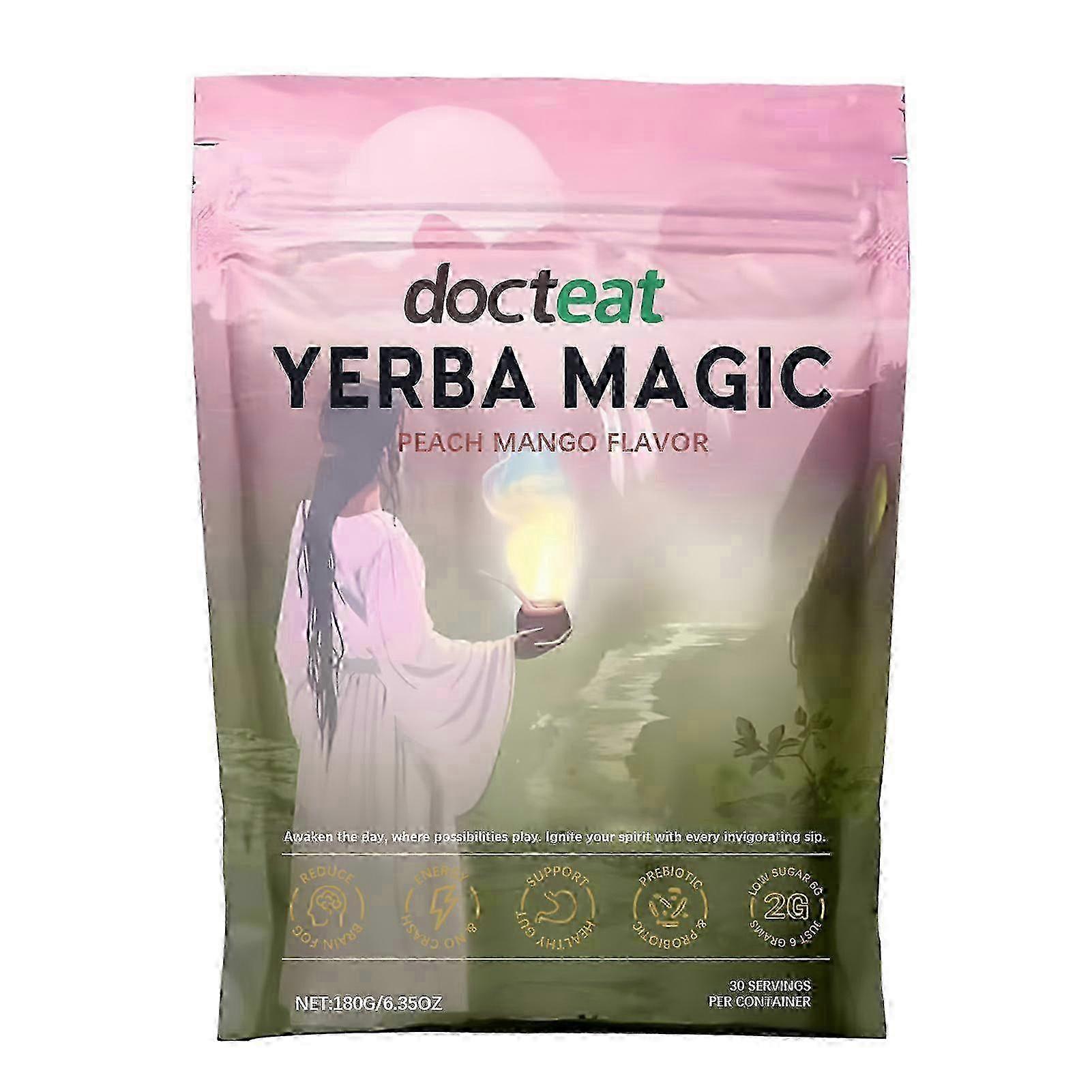 Yerba Mate Instant Tea Powder, Peach Mango Flavors, Natural Tea Mate with Prebiotics