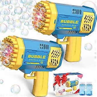 Bubble Gun 2 Pack with 2 Bottles Bubble Solution, 40-Hole Light Up Dip Bubble