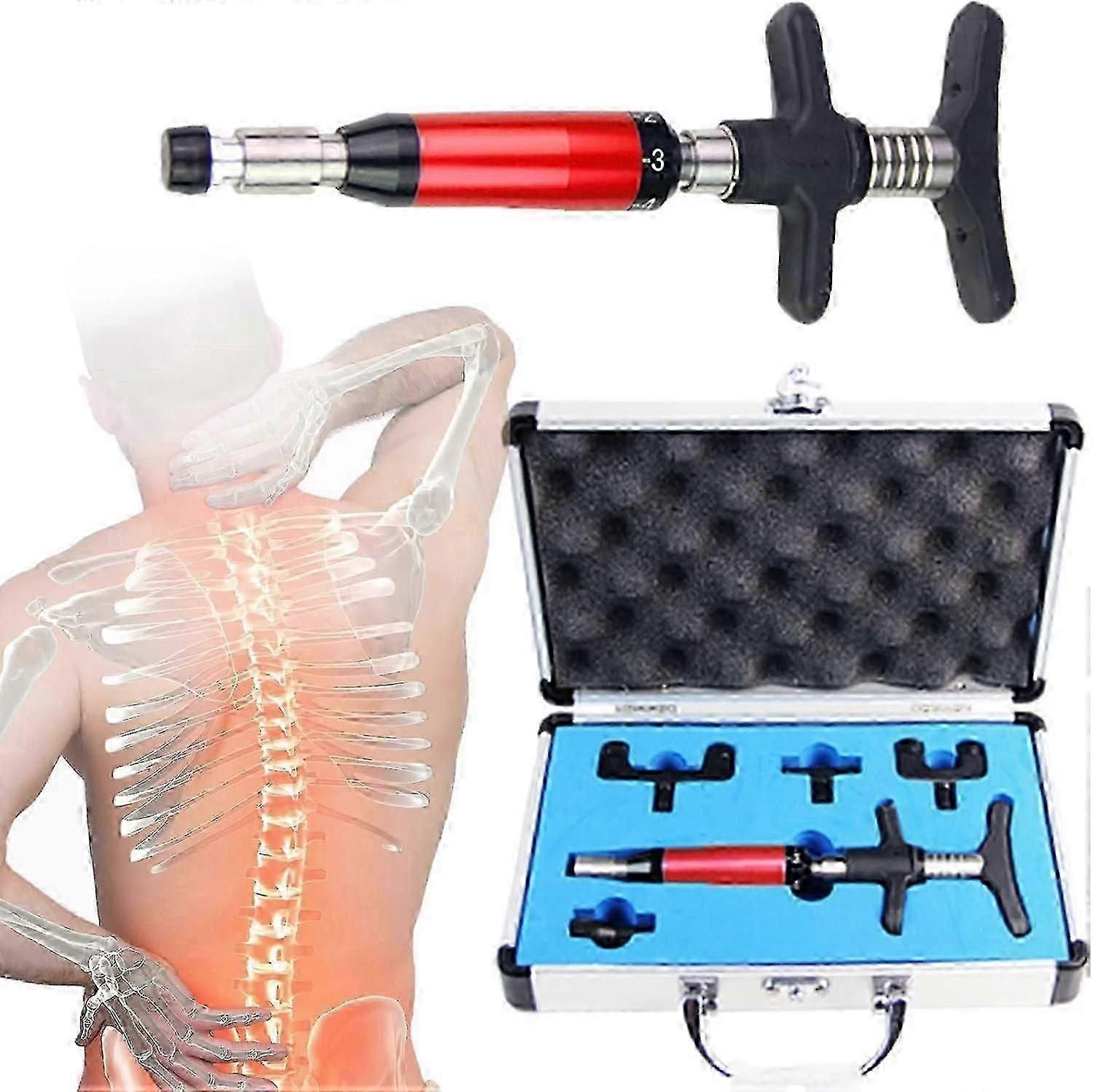 : Chiropractic Adjustment Massage Tool Spinal Activator with 6-Level Force Adjustment This professional Chiropractic Adjustment Gun is designed for licensed health care practitioners to align, mobilize, or manipulate the musculoskeletal joints of the spine and extremities, as well as for soft tissue mobilization. Key Features: High-Quality Material: Constructed with 304 stainless steel for excellent corrosion resistance, heat resistance, and superior mechanical properties. Adjustable Force Levels: Choose from six levels of force 50N, 100N, 150N, 200N, 250N, 300N to cater to different treatment needs. Durable Craftsmanship: Built to last with precision engineering for consistent and reliable performance. Efficient Treatment: Offers a convenient, time-saving, and labor-saving mechanical therapy option. Proximity Adjustment: Can be used in close contact with the skin (less than 5cm) for effective bone adjustment and pain relief. Powerful and Comfortable: Delivers stable and strong power for effective treatment and increased patient comfort. Restorative Function: Helps stimulate normal nerve cell and organ functions for quick restoration of body functions. Versatile Use: Ideal for treating scoliosis, thoracic spondylosis, cervical spondylosis, and other physical conditions.Force Adjustment Guide: Low Position: Approx. 50-100N, suitable for the occiput, upper cervical spine, and soft areas. Medium Position: Approx. 150-200N, typically used for the lower cervical, thoracic, and lumbar regions. High Position: Approx. 250-300N, ideal for the lumbar spine, sacrum, and sacroiliac joints.Attachment Options: Single Needle: For cervical spine adjustment, facial micro-surgery, and examination. U-Shaped Stylus: For cervical spine balance adjustment (large U for thoracic and lumbar spine, small U for cervical spine). T-Shaped Stylus: For scoliosis adjustment.Benefits: Improves joint pain and spasm: Relieves neck pain, back pain, headaches, dizziness, and arm numbness. Spinal Adjustment: Addresses spinal stiffness, movement disorders, and gastrointestinal dysfunction. Physical Beauty: Helps with conditions like hunchback, torticollis, and posture correction.Specifications: Item Type: Chiropractic adjustment tool Material: 304 stainless steel (one head)/plastic steel (four heads are replaceable) Adjustable Force: 50N, 100N, 150N, 200N, 250N, 300N Optional Heads: 1 x Single-ended stylus, 1 x T-shaped stylus, 2 x U-shaped stylus (replaceable) Box Size: Approx. 25 x 16 x 5 cm (9.8 x 6.3 x 2.0 inches)Packing List: 1 x Chiropractic tool 1 x Single stylus 1 x T-shaped stylus 2 x U-shaped stylus 1 x Packaging carrying caseThis tool is intended for professional use only and should be used by a licensed practitioner to ensure safe and effective treatment.