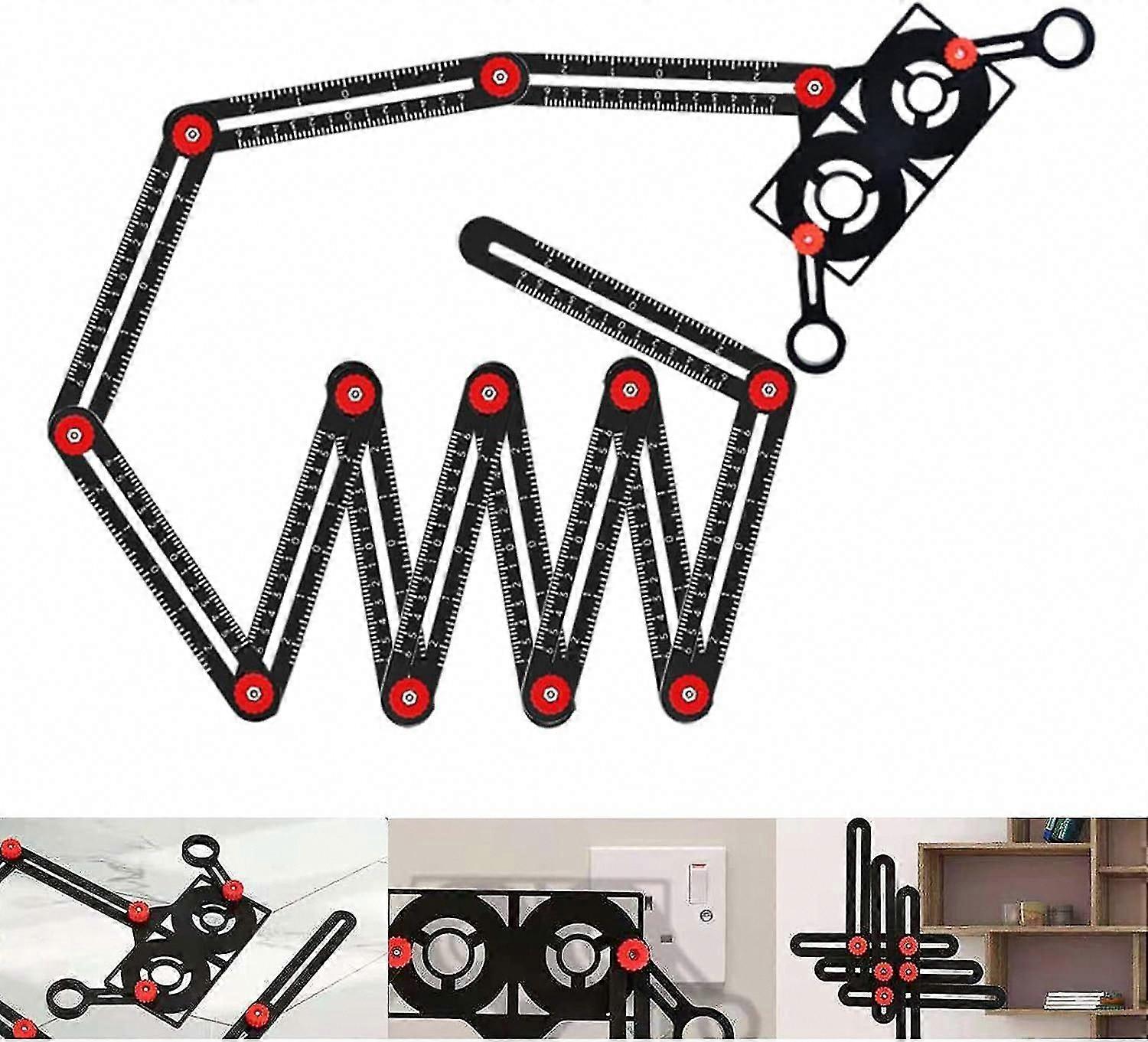 12-Sided Multi-Angle Measuring Ruler, Precision Aluminum Alloy Layout Tool with Punch & Drilling for Builders, Carpenters, DIYers - Black