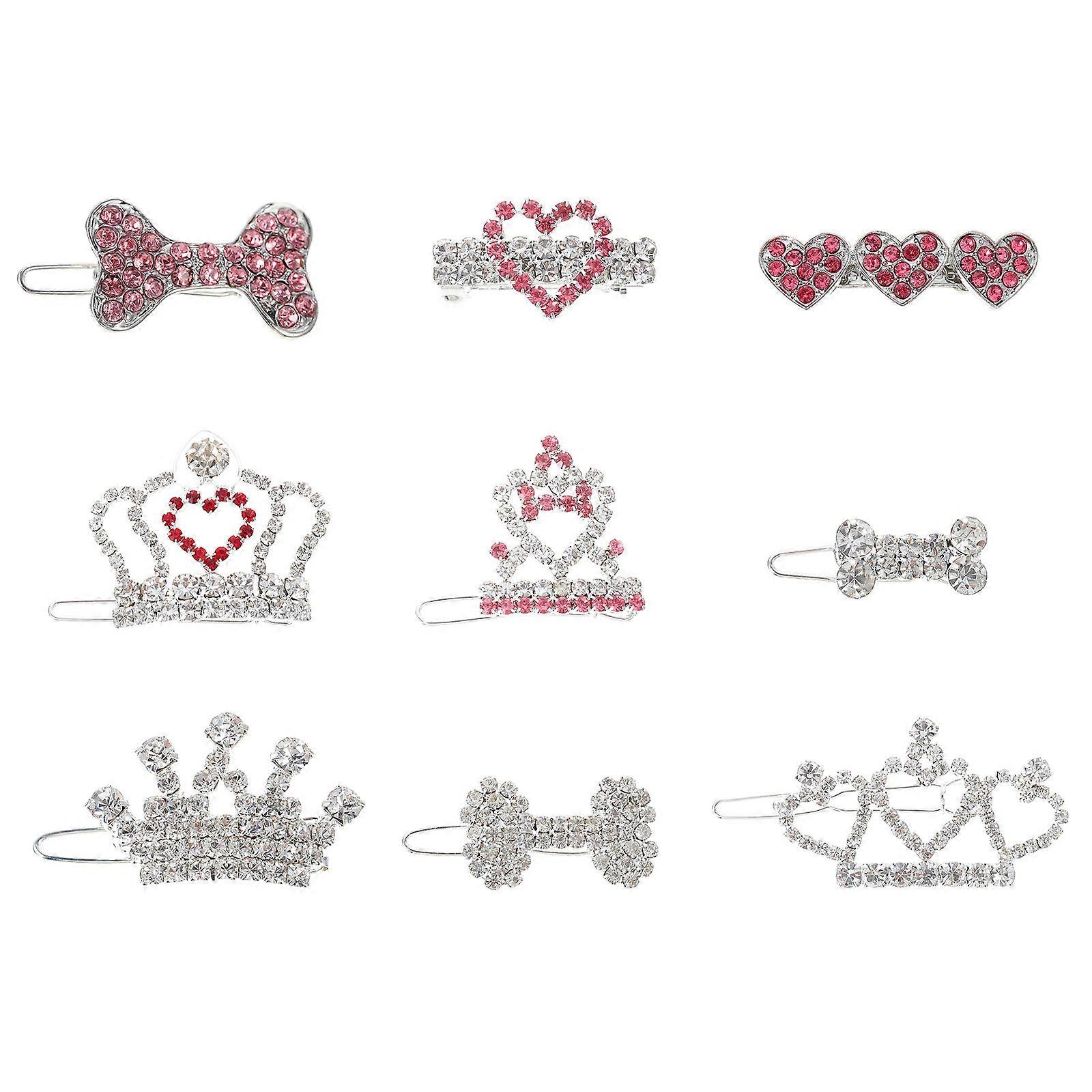 Hair Barrettes for Dogs Rhinestone Design Daily Life 9Pcs