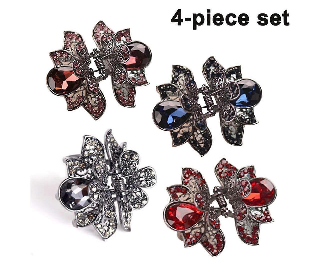 Mini Jaw Clips, Metal Crystal Hair Claws, Non-Slip Flower Barrette, Vintage Metal Rhinestone Hair Clip Accessories-4-Piece Set