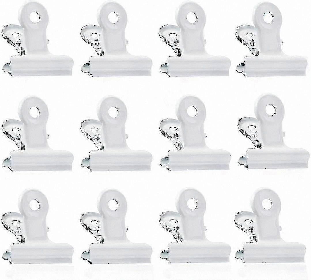 White Small Bulldog Clips, 12 Pack Metal Binder Clips, 22mm Multipurpose Photo and Paper Clips for Office, Home, and Kitchen Use