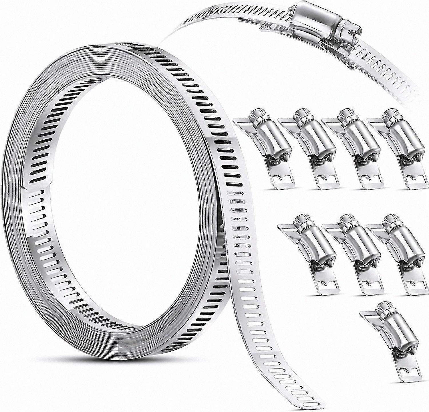 Adjustable Stainless Steel Hose Clamps, 304 Worm Gear Clamps with Tie Downs (9 Pack, 11.5ft Total Length)